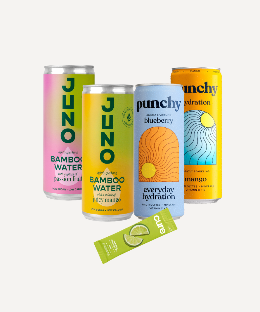 Punchy and Juno deliver functional performance blends to help you power through workouts, busy days and everything in between. Cure steps in with science-backed electrolytes to rehydrate fast, replenish minerals and help you bounce back stronger.